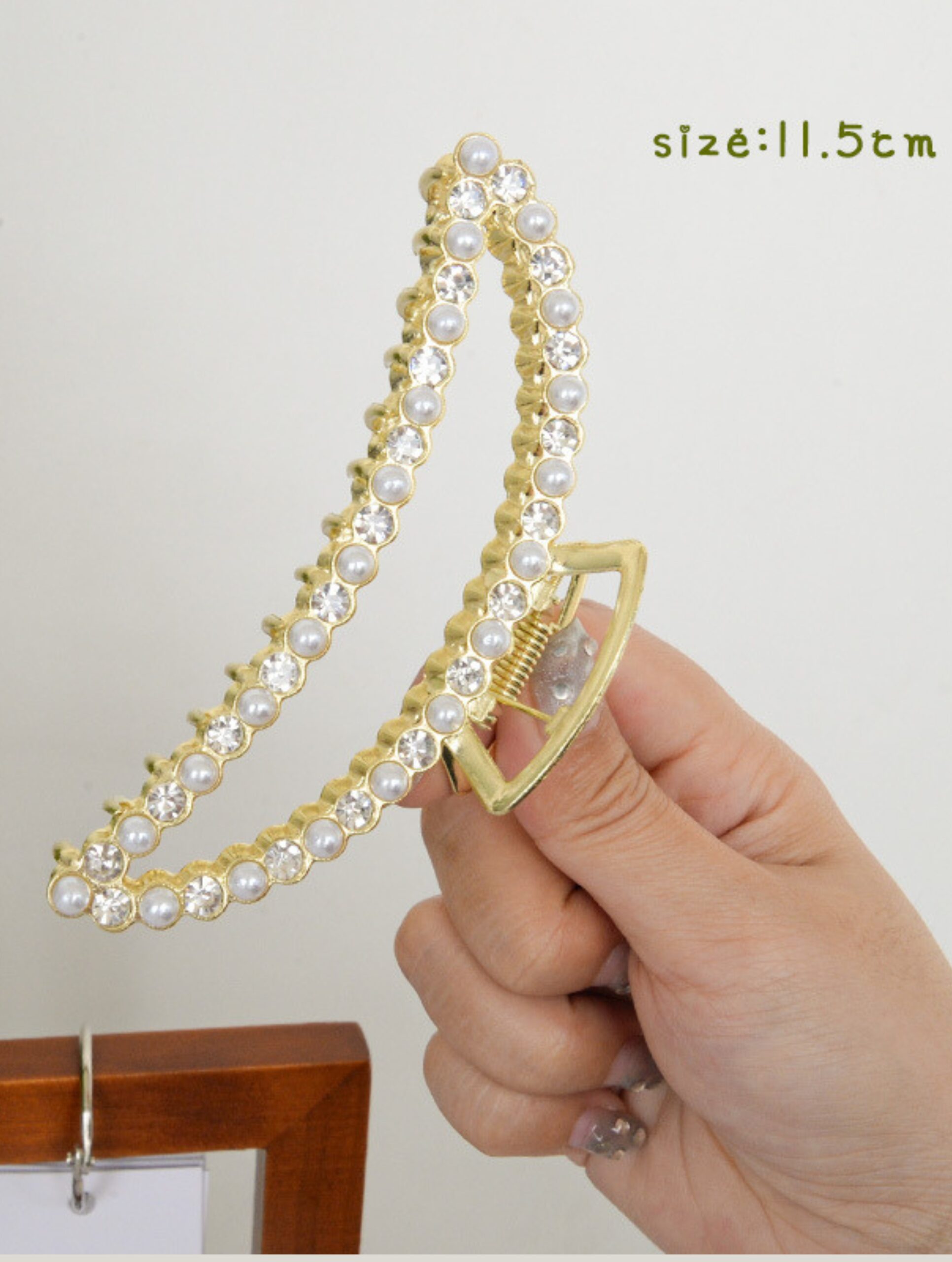 Metal Hair Clip Pearl with Drill Large Cross Grip Light Gold