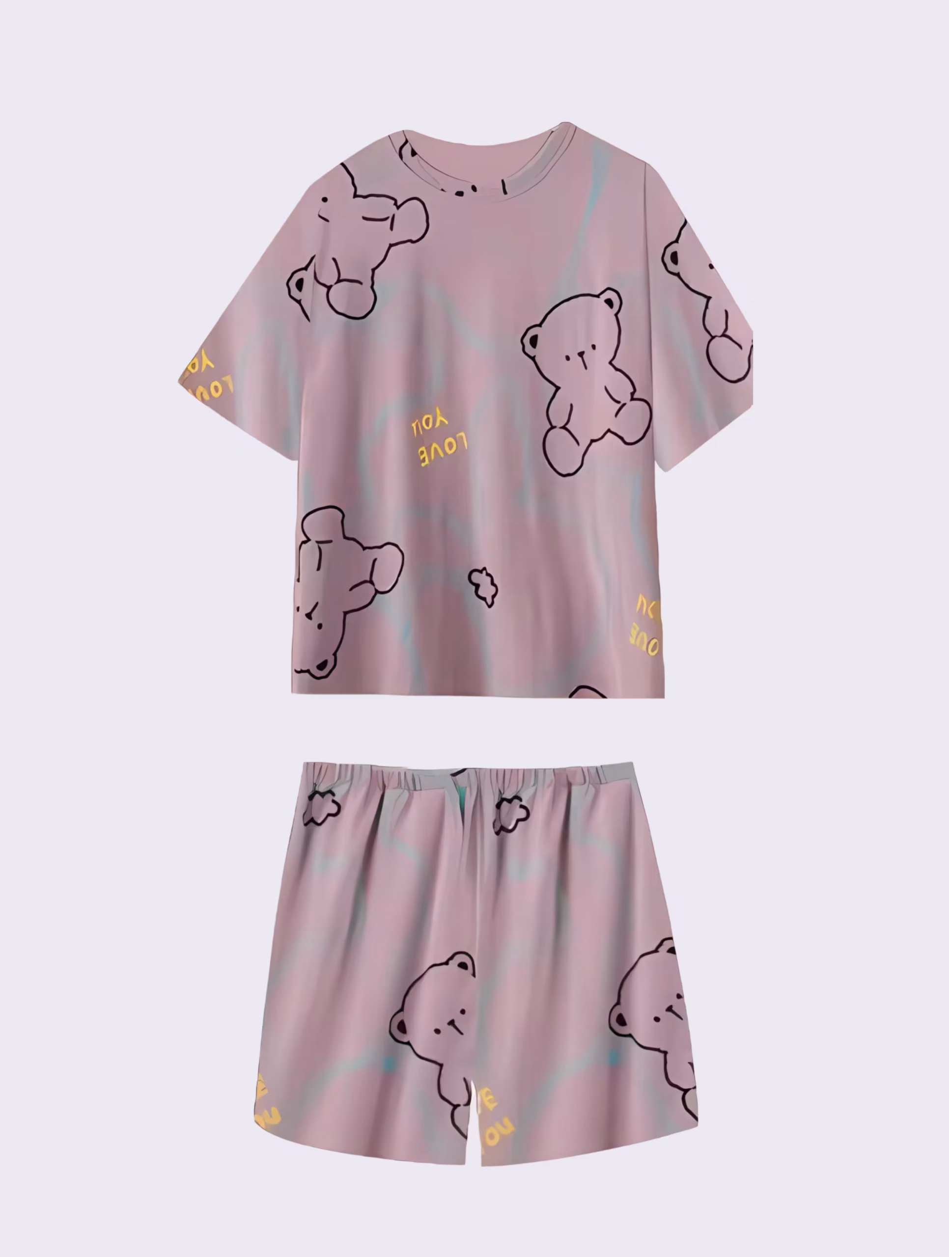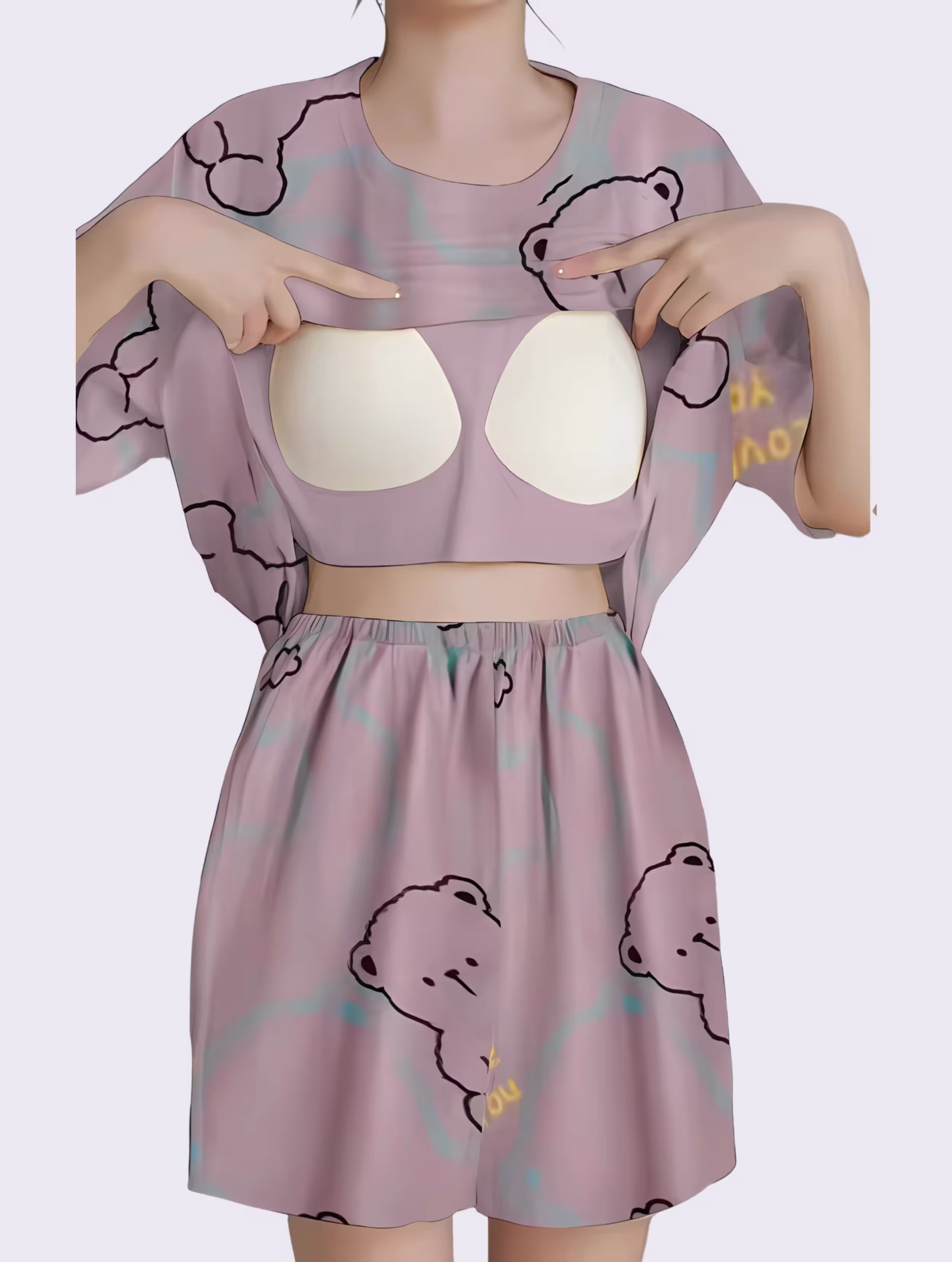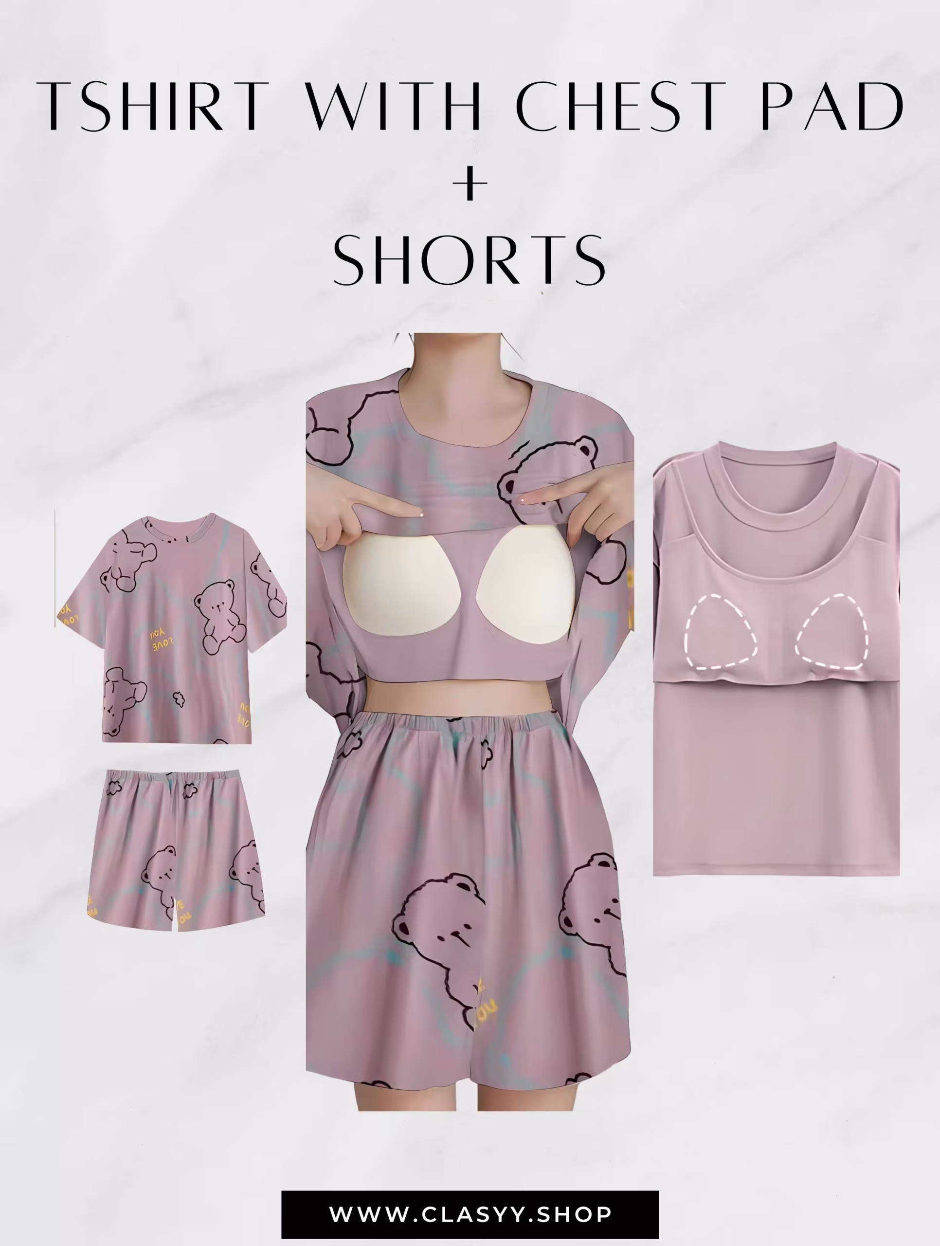 Purple bear Women Summer Printed Short-sleeved T-shirt With Chest Pad + Shorts Combo